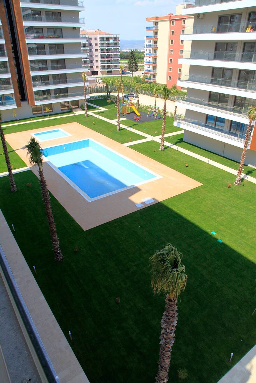 15.000 m2 inşaat alanlı projede 50 lüks konut , havuzlu ve açık otoparklı bahçe peyzajı yapılmıştır.